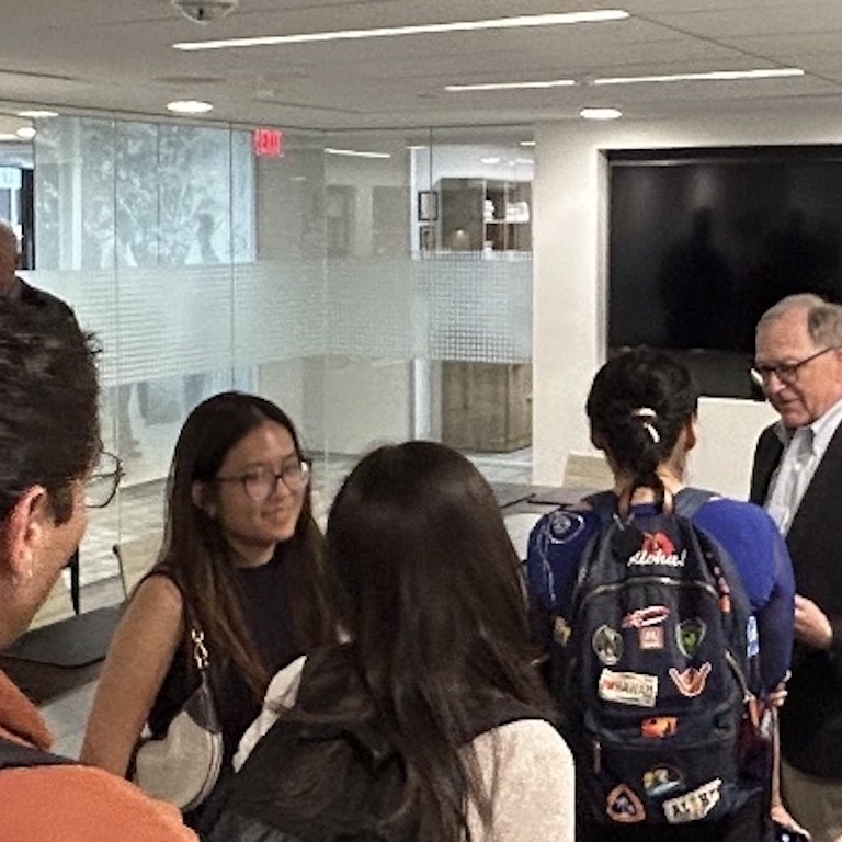 During the Fall semester three undergraduate and 16 graduate students from the Economics department within the College of Arts and Sciences at Indiana University Bloomington traveled to Washington, D.C. to meet with distinguished alumni and policy experts shaping today’s economic landscape. Ike Brannon (Ph.D. ’93), an IU Economics graduate and president of the consulting firm Capital Policy Analytics, drew on his extensive network to coordinate multiple events for the students.